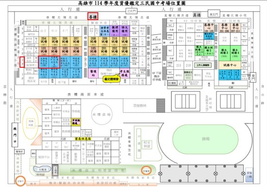 (ㄧ) 5/22 (四)下午 3 點將在三民國中網站公告「鑑定試場位置圖」及「試場分配表」,不開放現場看考場服務。
