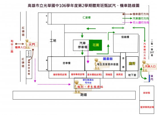 8:30-9:00本校學生展演台報到→考生及家長休息區(圖書館)。