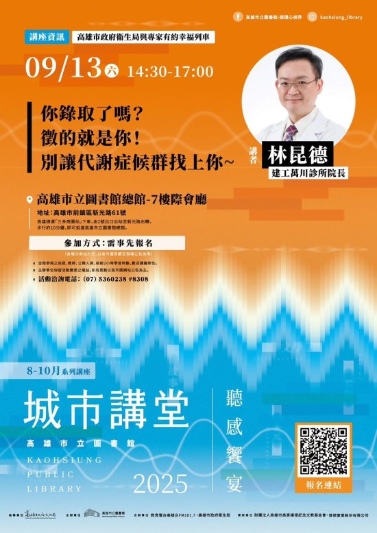 一、為提升民眾代謝症候群識能及增進其自我疾病管理能力,本局辦理 114 年「與專家有約-健康幸福列車」系列講座,邀請專業醫師分享正確觀念,使民眾了解預防代謝症候群之重要性及預防策略。