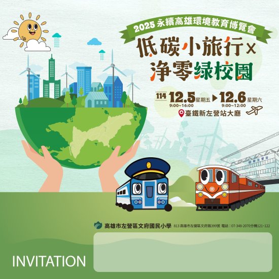高雄市政府教育局辦理「2025 永續高雄環境教育博覽會─低碳小旅行×淨零綠校園」,鼓勵親師生踴躍搭乘大眾運輸工具前往參與。