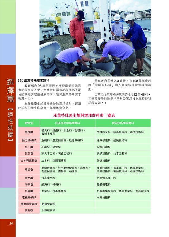 一、依據 111 學年度全國高級中等學校及專科學校五年制適性入學委員會 111 年 3 月 14 日草商適性字第 1110200070 號函辦理。 二、旨揭宣導手冊第 56 頁產業特殊需求類科辦理群科別一覽表,技術型高中專業群科之家政群「家政服務科」係誤植,更正為「照顧服務科」,如附件。