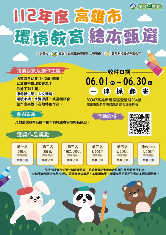 (三)繪本創作主題:以高雄市環境教育為主,依據下列主題擇一或互相結合,創作出高雄市在地特色作品。