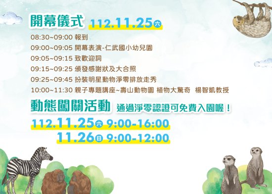 (三)入園資訊:請踴躍搭乘大眾運輸工具前往,於服務台通過淨零認證即可免費入園。