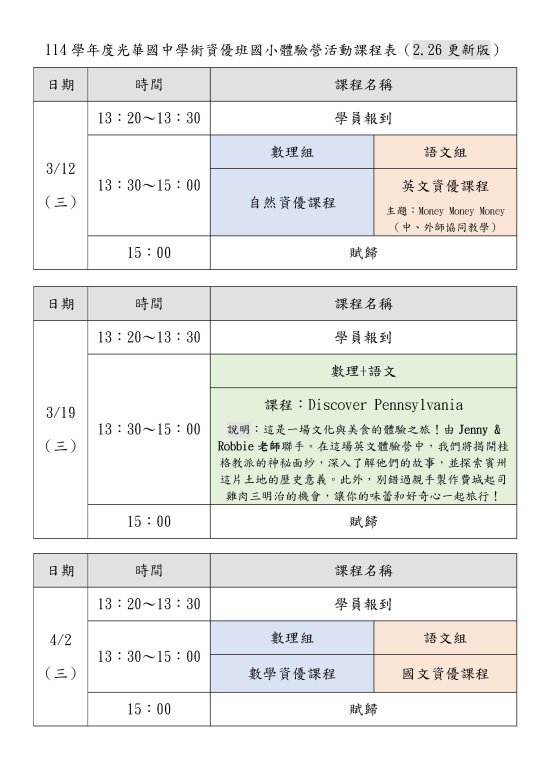 3.人數:數理、語文組各預定 20 人