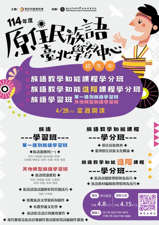 一、為協助強化原住民族語言師資教學專業知能,期有效提升原住民族語言教學質與量,並強化族語傳承與發展之深度與廣度,臺師大於 114 年度持續辦理旨揭專班。